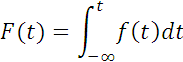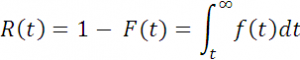where f(t) is the density function of the random variable, time to failure. This is termed the “unreliability function” when speaking of failure. It can be thought of as representing the probability of failure prior to some time t. If the random variable is discrete, the integral is replaced by a summation.