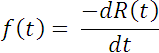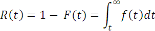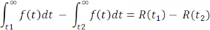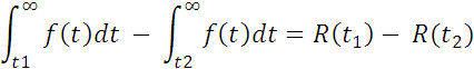 The probability of failure in a given time interval between t1 and t2 can be expressed by the reliability function