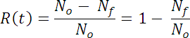 Perhaps some of these concepts can be seen more clearly by use of a more concrete example. Suppose that we start a test at time, to, with No devices. After some time t, Nf of the original devices will have failed, and Ns will have survived (No = Nf + Ns). The reliability, R(t), is given at any time t by: