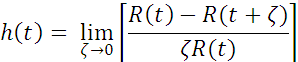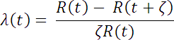 where t = t1 , and t2 = ζ. The hazard rate, h(t), or instantaneous failure rate is defined ss the limit of the failure rate as the interval length approaches zero, or
