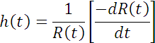 This is one of the fundamental relationships in reliability analysis. For example, if one knows the density function of the time to failure, f(t), and the reliability function, R(t), the hazard rate function for any time, t, can be found. The relationship is fundamental and important because it is independent of the statistical distribution under consideration.