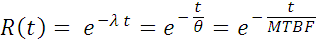 It is important to remember that MTBF only has meaning for repairable items, and, for that case, MTBF represents exactly the same parameter as mean life (θ). More important is the fact that a constant failure rate is assumed. Thus, given the twin assumptions of replacement upon failure and constant failure rate, the reliability function is