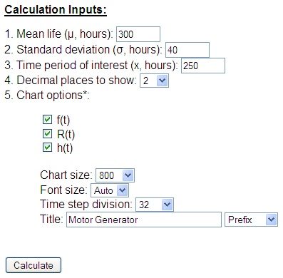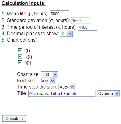 Entering the given data into the Normal Distribution tool of the Reliability Analytics Toolkit, inputs 1-3: