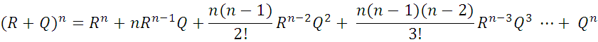 This is nothing more than the familiar binomial expansion of (R + Q)n Thus,