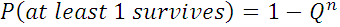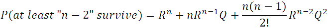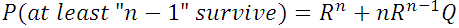 R4 + 4R3Q + 6R2Q2 + 4RQ3 = 1 – Q4 = P(at least 1 survives)